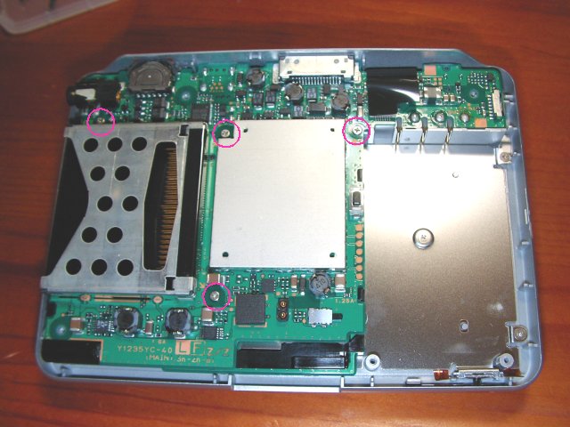 裏蓋のネジを全部外して分解します(同じ金型の筺体を使っているのでネジの場所は4桁ザウルス共通)。電池蓋の内側にもネジがありますのでご注意を。 | ||||||||||||||||||||||||||||||||||||||||||||||||||||||||||||||||||||||||||||||||||||||||||||||||||||||||